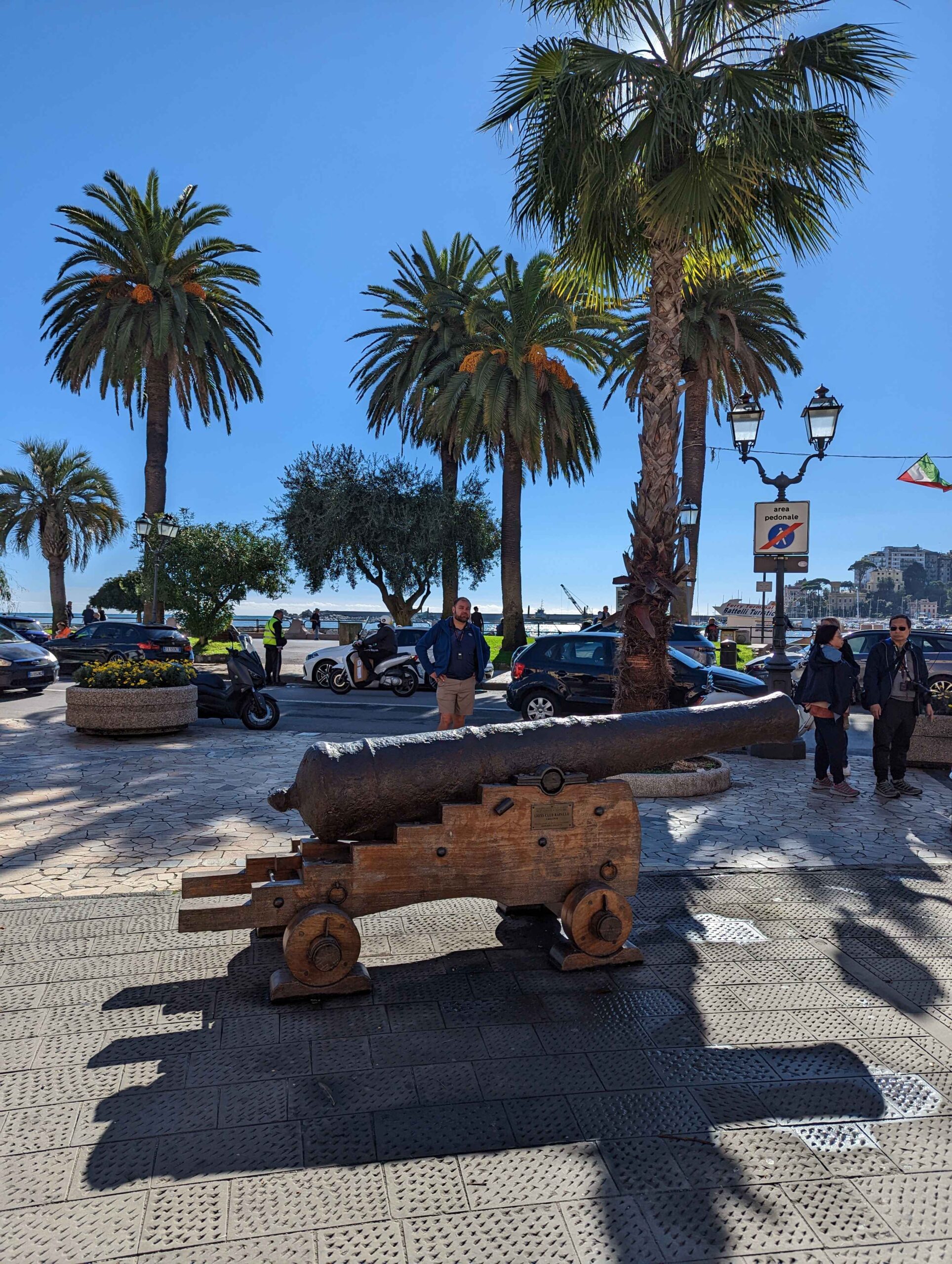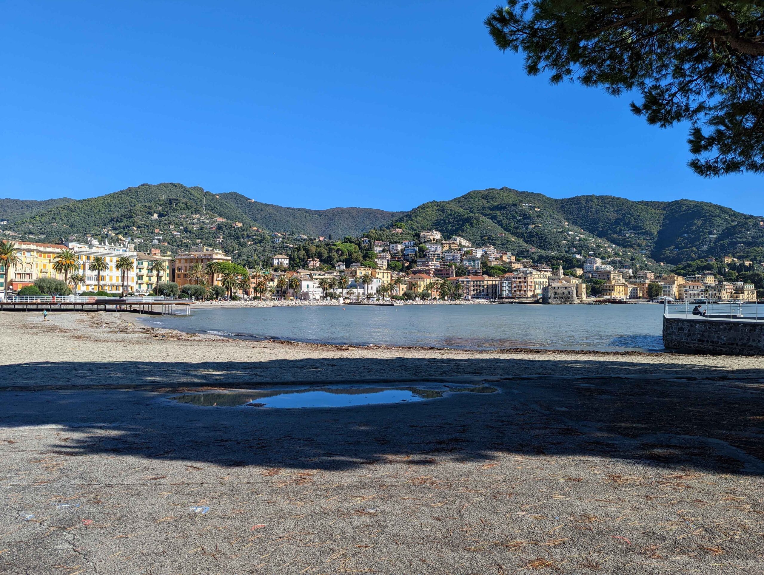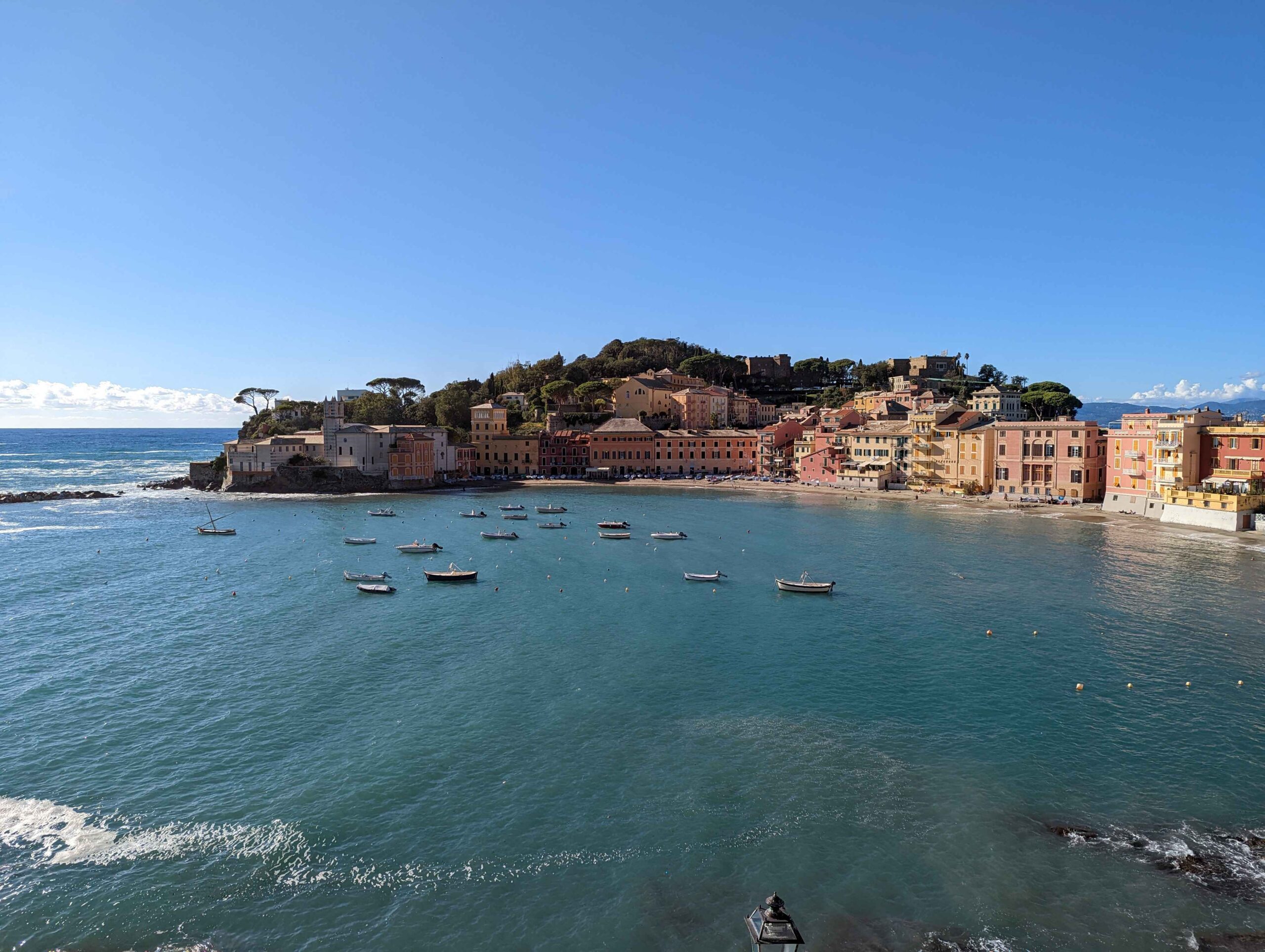 From Genoa, I set out toward the Riviera di Levante, heading to Rapallo and Sestri Levante. Rapallo offered a livelier scene, with a wide promenade lined with palm trees, cafés, and shops. The waterfront felt open and easy to walk, and landmarks like the small seaside castle and the painted pavilion added just enough detail to make the town feel distinct without being overwhelming.