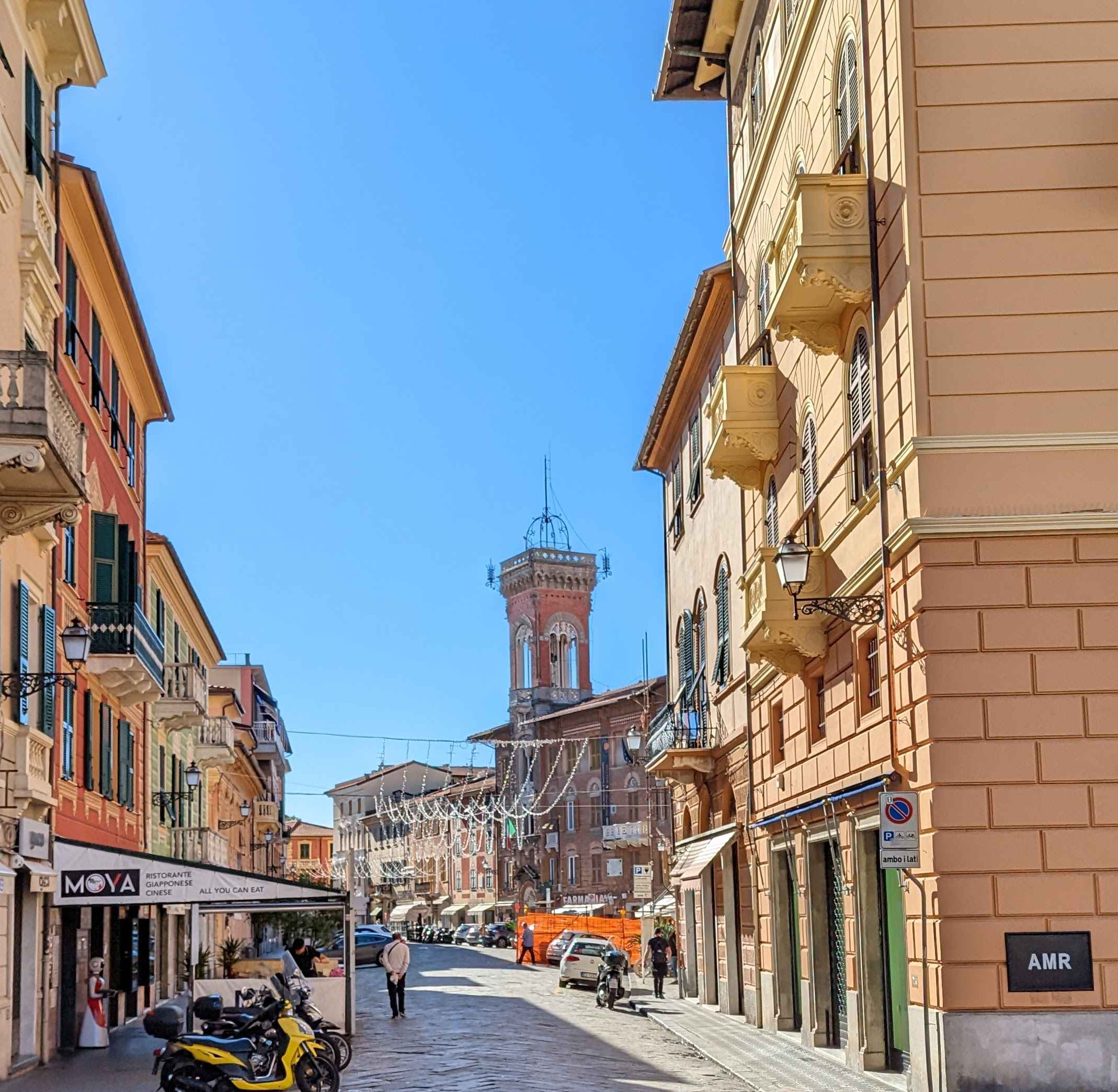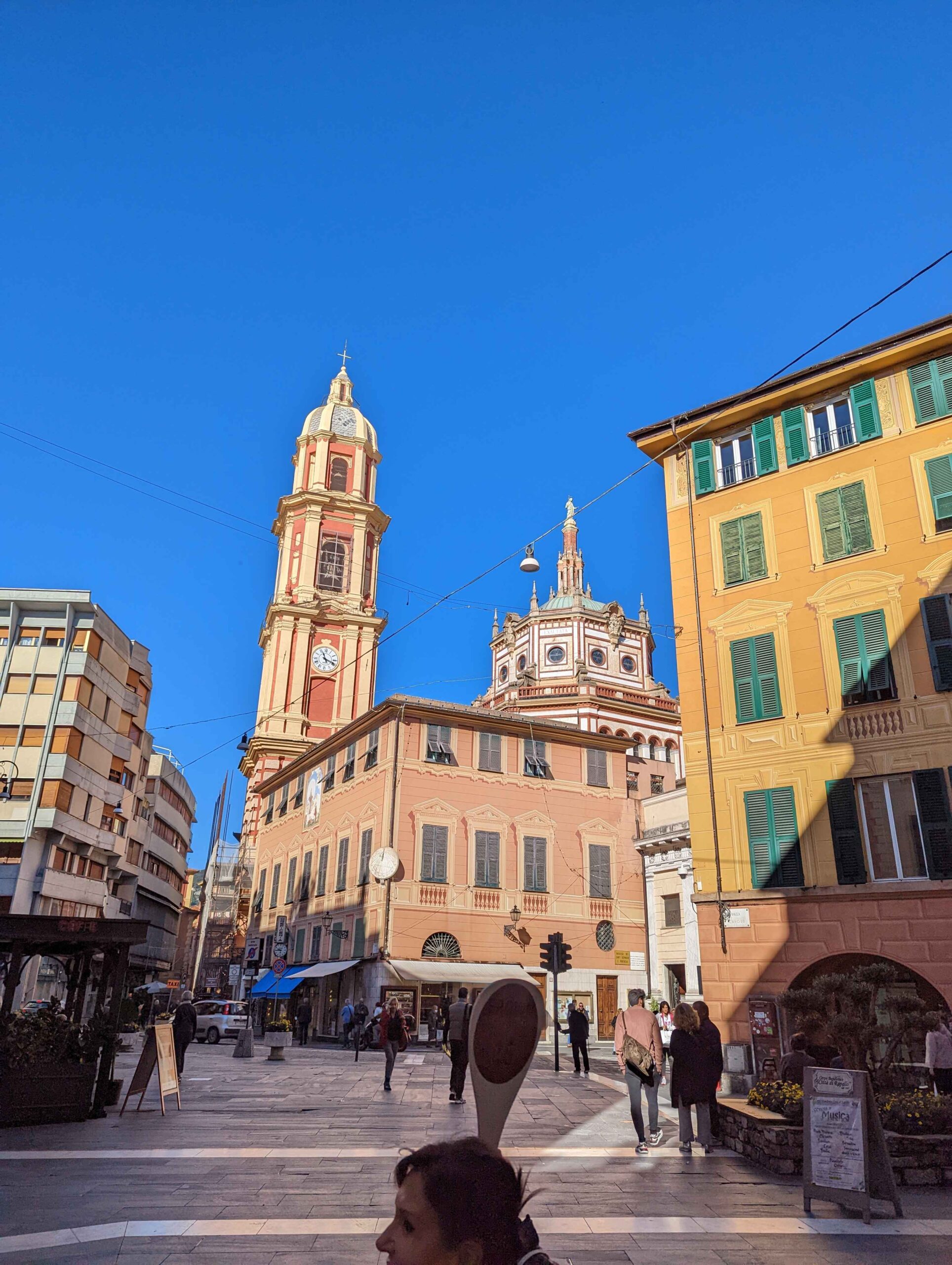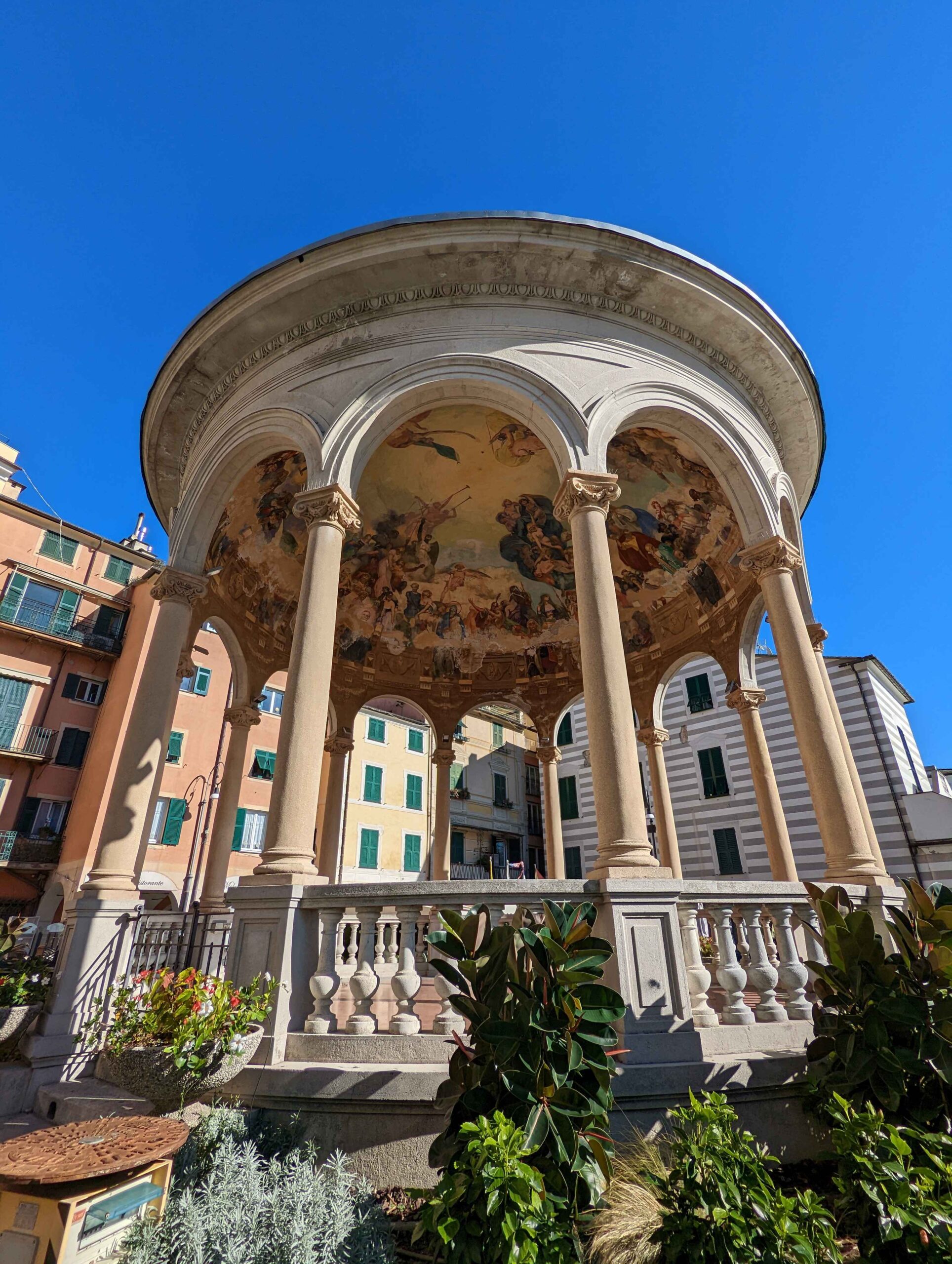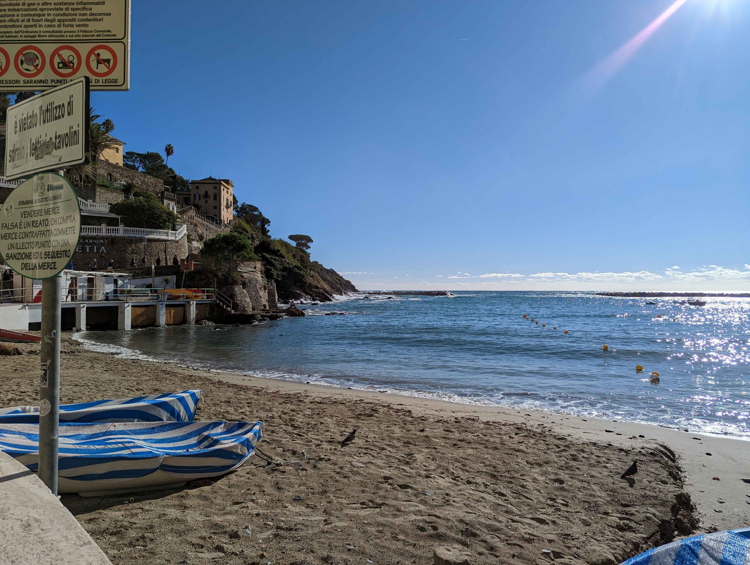 From Genoa, I set out toward the Riviera di Levante, heading to Rapallo and Sestri Levante. Rapallo offered a livelier scene, with a wide promenade lined with palm trees, cafés, and shops. The waterfront felt open and easy to walk, and landmarks like the small seaside castle and the painted pavilion added just enough detail to make the town feel distinct without being overwhelming.