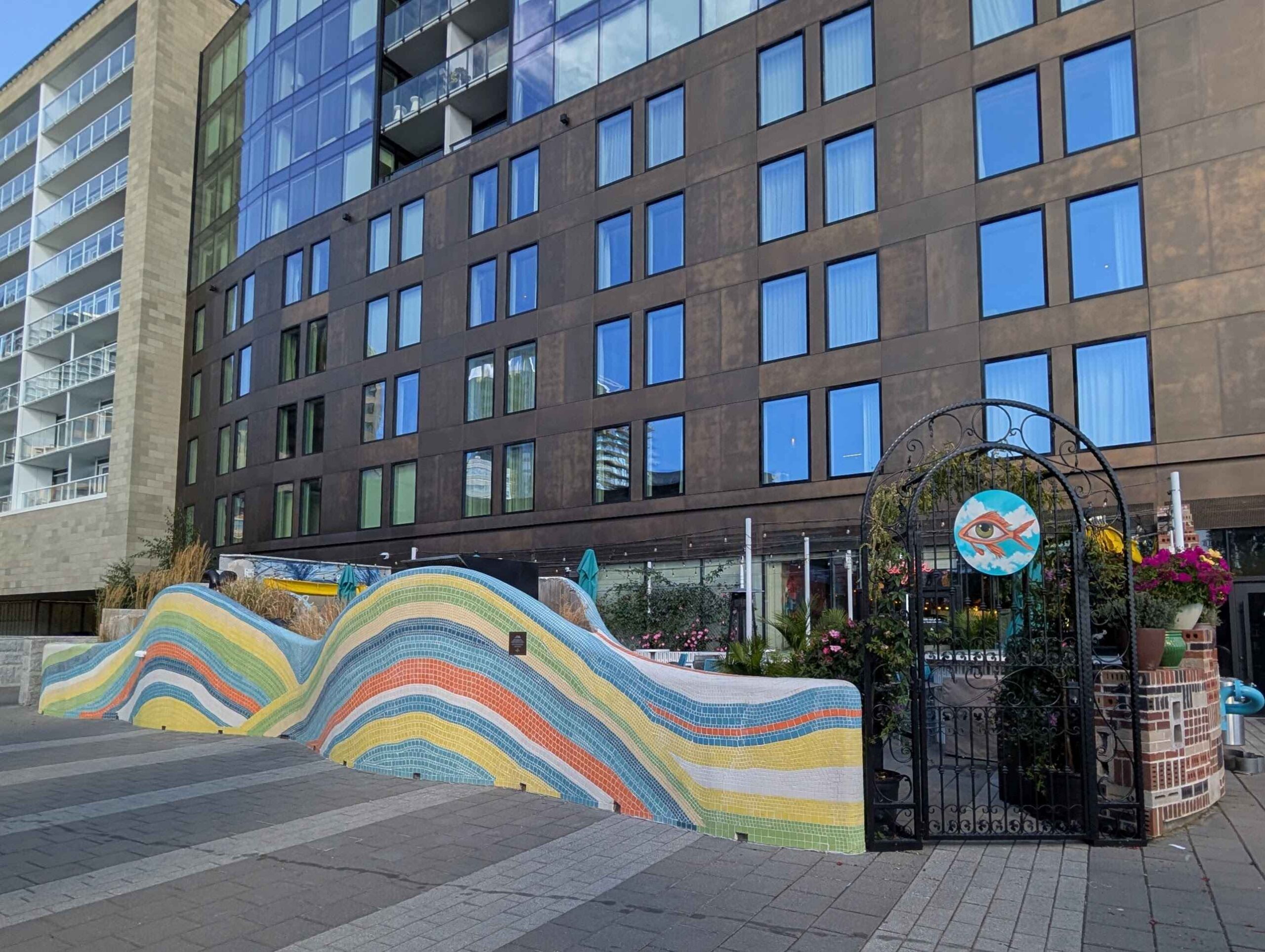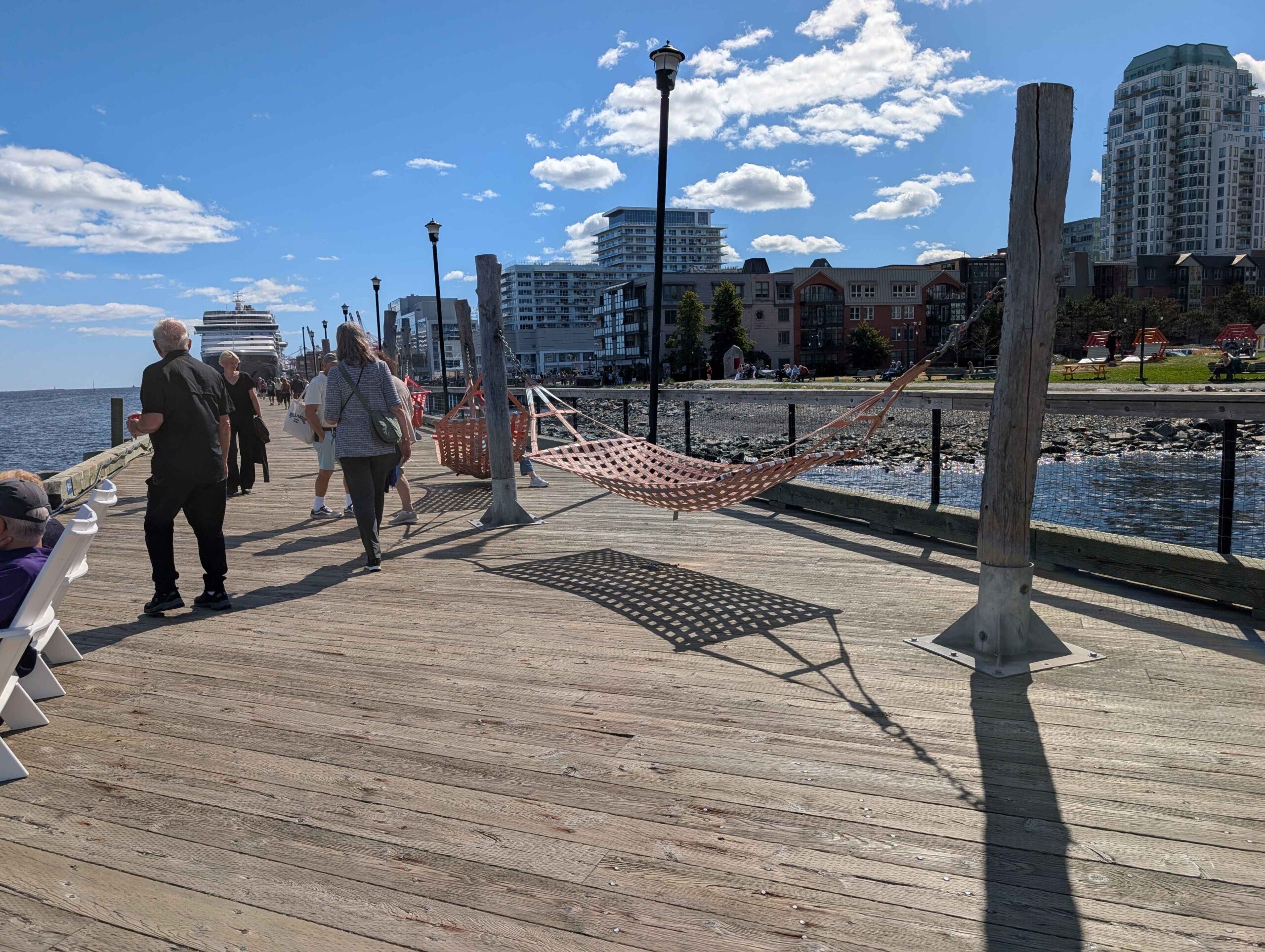 Stepping off the ship, the boardwalk was my first stop. Adirondack chairs and hammocks line the pier, offering views of the harbor. Street murals and the quirky Harbour Hopper vehicle added color and character, making the waterfront an easy place to linger.
