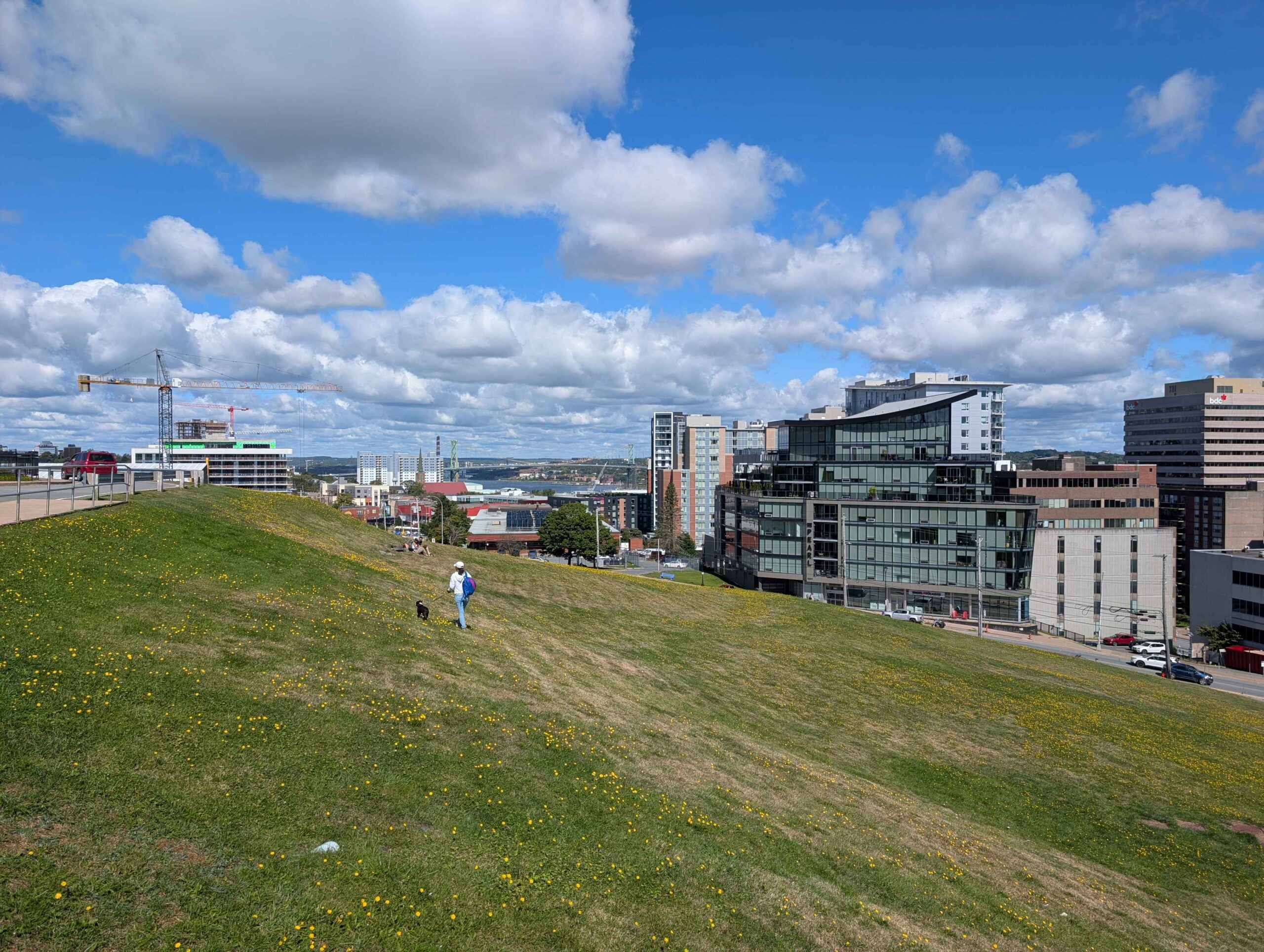 Continuing uphill, I passed Camp Hill Cemetery, a quiet space of shaded trees and historic markers. Just beyond, the Halifax Lancers riding club came into view, where horses grazed in paddocks with high-rises in the background. It felt surreal to find an equestrian program thriving in the center of downtown.