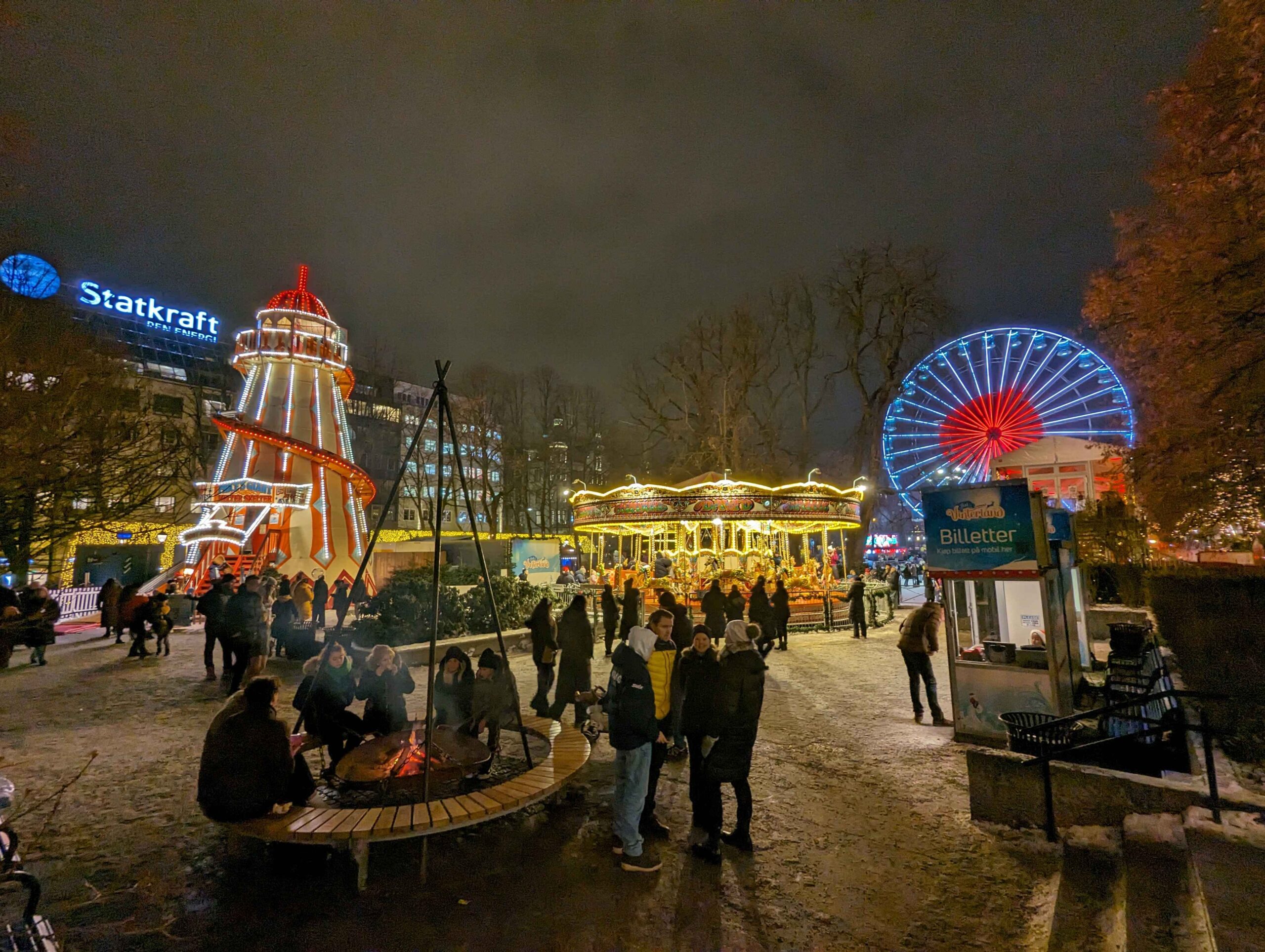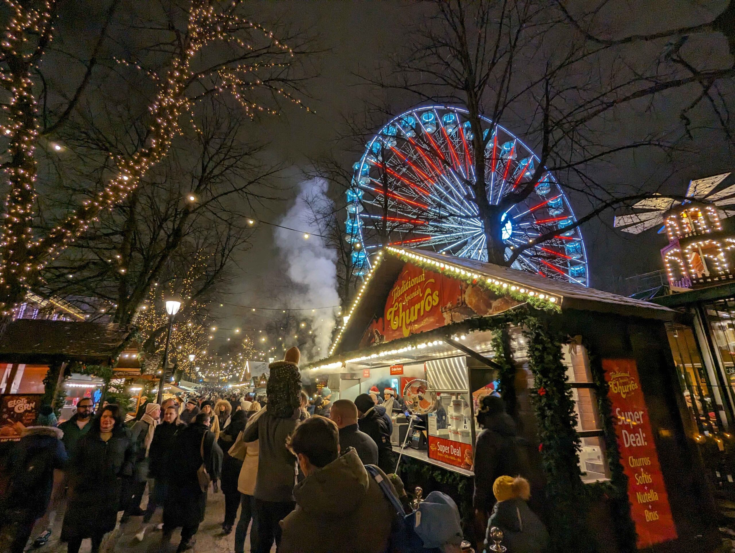 Another trip brought me to Oslo during the winter holiday season, specifically to experience Jul i Vinterland Christmas Market at Spikersuppa. As an American visiting a European Christmas market for the first time, the atmosphere felt magical. Wooden stalls glowed with lights while the scent of raclette churros and roasted snacks filled the air. I enjoyed wandering through the market, watching the crowds gather around rides and festive decorations, so much that I returned every night during my weekend visit.